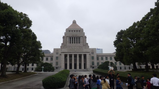 6年生修学旅行隊。国会議事堂の見学を終えました。全員元気です。事前に学習してきた...